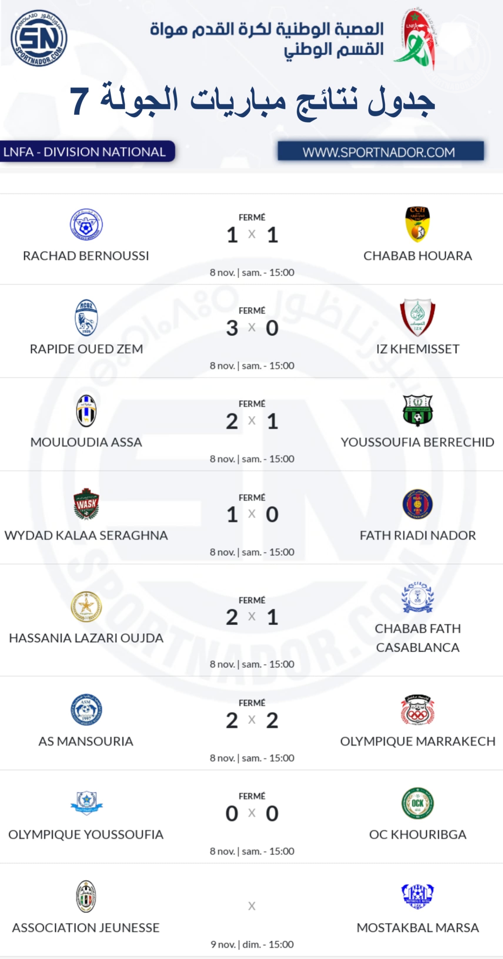 نتائج الجولة السابعة من بطولة القسم الوطني هواة 2025‑2026 التي جرت يوم السبت 8 نوفمبر 2025: