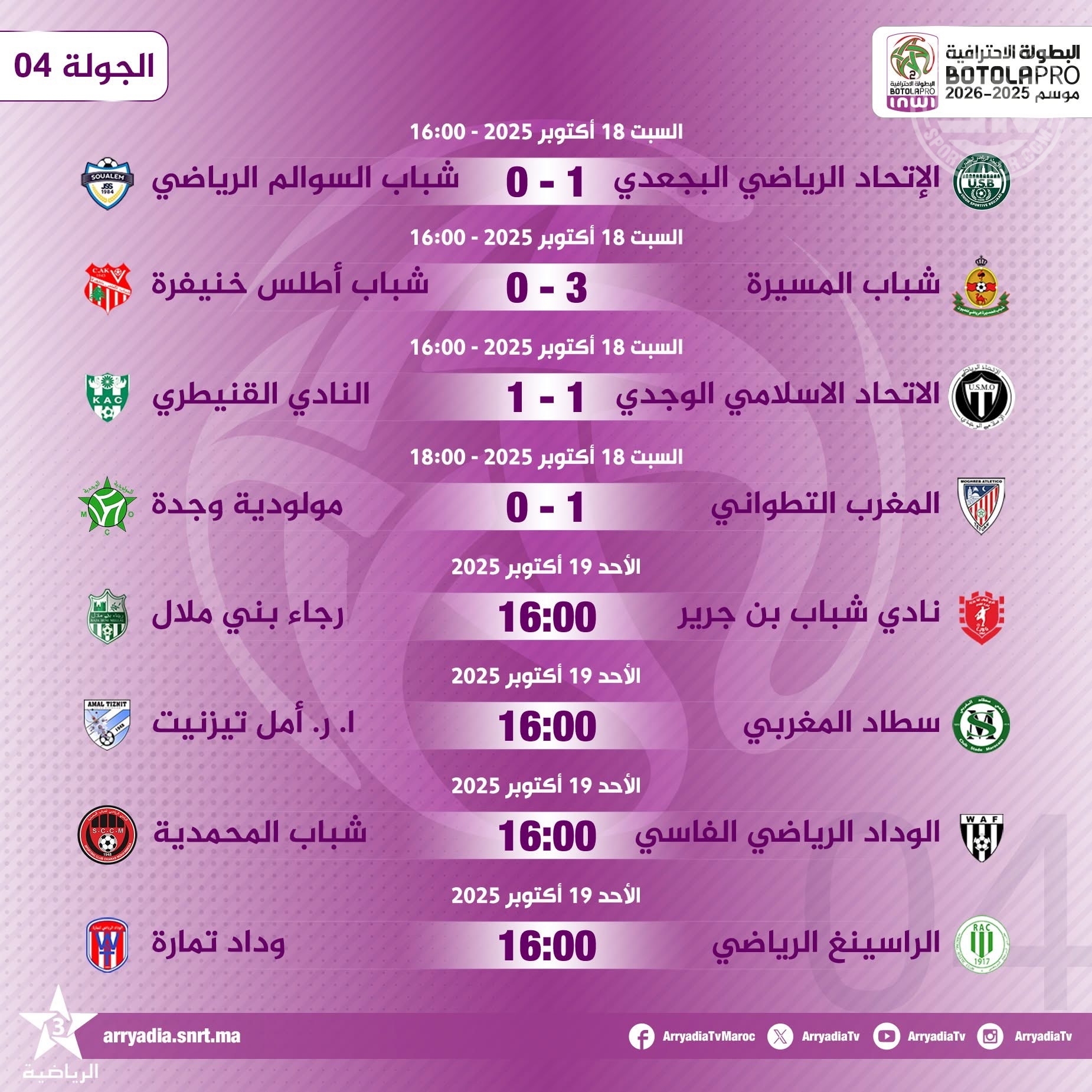 البطولة الاحترافية إنوي – القسم الثاني 2025-2026 | الجولة 04: النتائج وبرنامج المباريات القادمة
