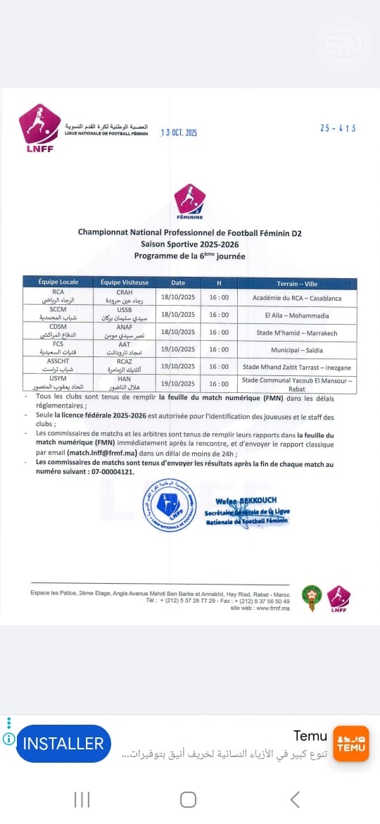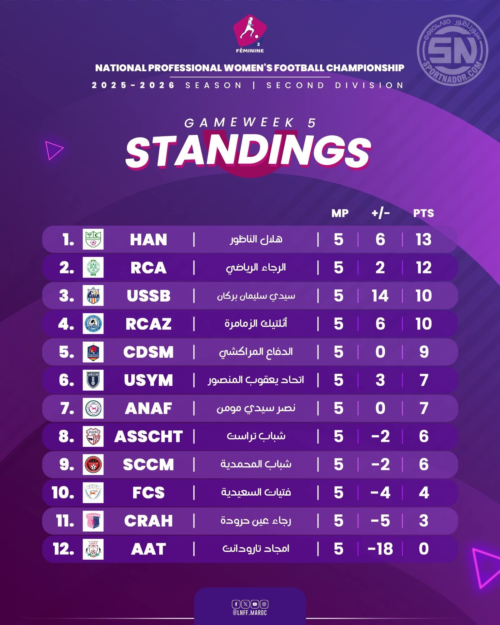 العصبة الاحترافية النسوية تكشف برنامج الجولة السادسة: الهلال الناظوري يواجه يعقوب المنصور في قمة الجولة