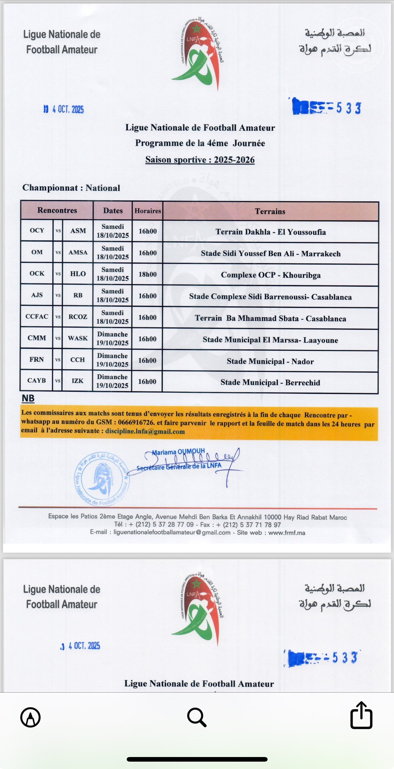 العصبة الوطنية تكشف عن برنامج الجولة الرابعة للقسم الوطني هواة