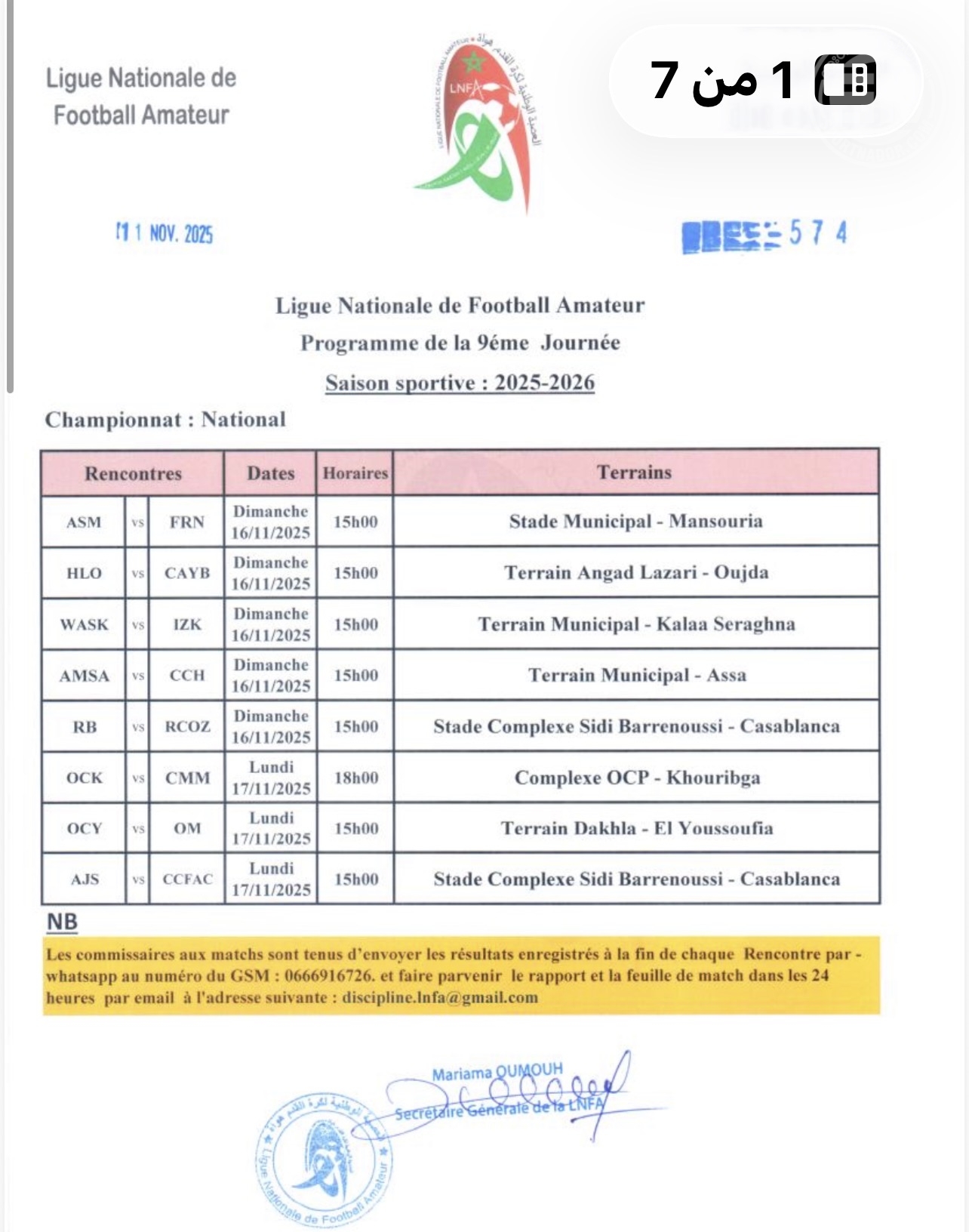 العصبة الوطنية للهواة تكشف عن برنامج الجولة التاسعة من القسم الوطني