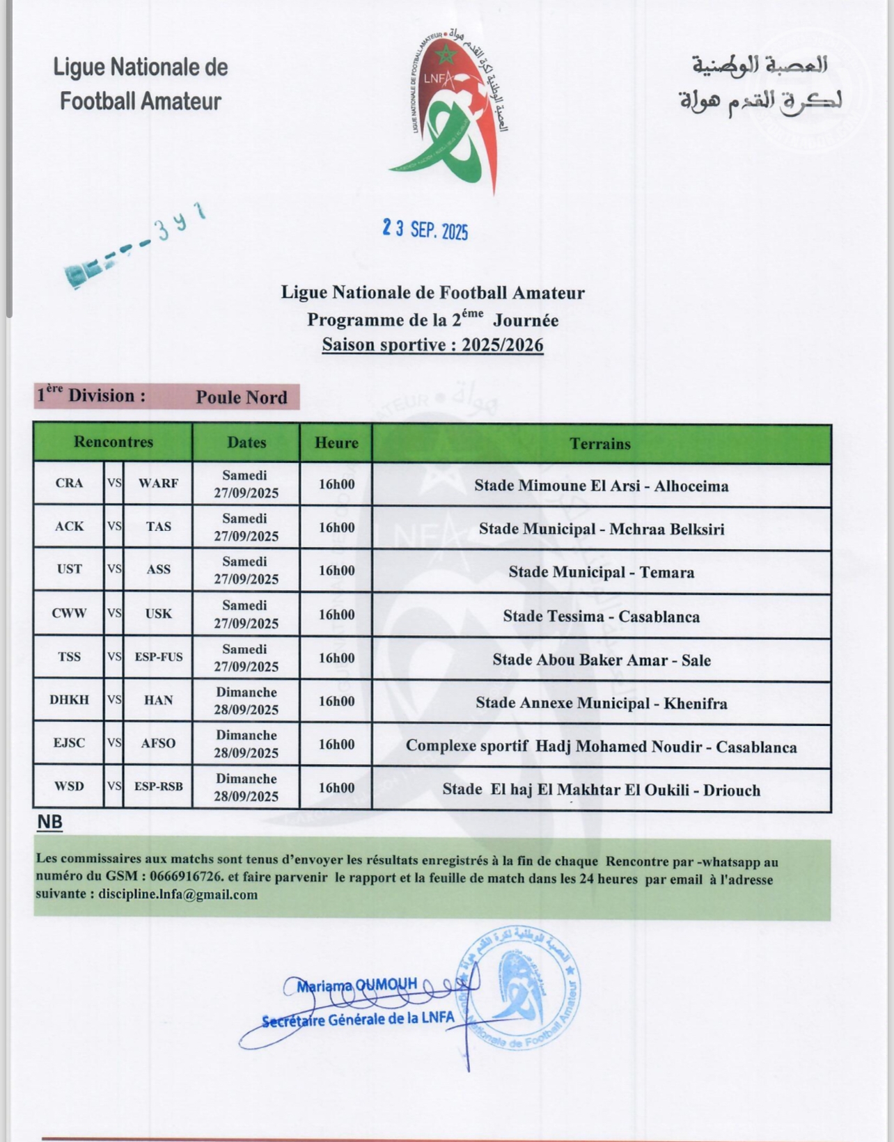 تشهد الجولة الثانية من منافسات القسم الأول هواة مباريات قوية ومثيرة، حيث يرحل هلال الناظور لمواجهة دفاع حمرية خنيفرة في مباراة يسعى فيها الفريقان لتعزيز مواقعهم في الترتيب. وفي أبرز مباريات الجولة، تشهد الدريوش قمة ساخنة عندما يستضيف وفاء الدريوش فريق وعلى ملعب الحاج المختار بالدريوش، امل بركان في مواجهة تعد بالكثير من الإثارة والمنافسة الشديدة. وفي مباراة أخرى، سيستقبل شباب الريف الحسيمة ضيفه الوفاء الرياضي الفاسي، في لقاء يسعى من خلاله الفريق الحسيمي لتحقيق أول انتصار له في الموسم والمضي قدمًا في سباق الترتيب