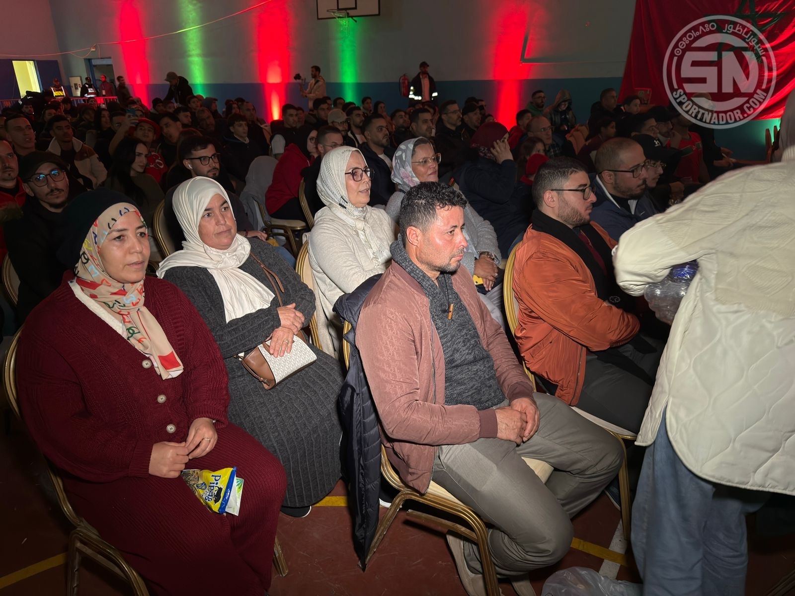 شهدت التظاهرة إقبالًا جماهيريًا كبيرًا، حيث امتلأت القاعة بالعائلات والشباب والأطفال، في مشهد يعكس شغف ساكنة الناظور بكرة القدم. كان الحضور متحمسًا لمتابعة مباريات “أسود الأطلس” في أجواء جماعية وآمنة، حيث تم بث المباريات عبر شاشة عملاقة بجودة عالية. كما تم تنظيم فقرات تنشيطية متنوعة، بالإضافة إلى توزيع جوائز، مما أضفى على الحدث طابعًا حيويًا وزيِّن الحماس في الأجواء.