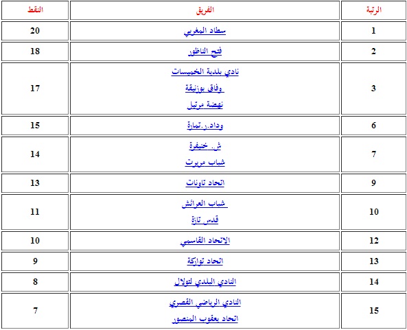 النتائج + الترتيب لقسمي هواة الاول والثاني