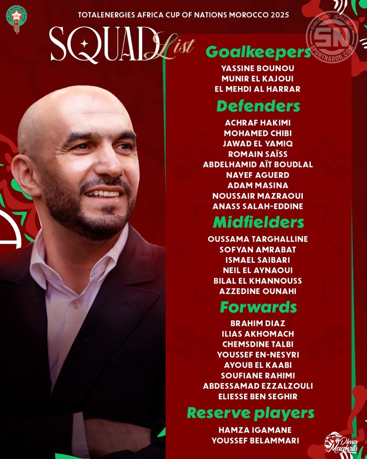 القائمة الاحتياطية: يوسف بلعماري – حمزة إيغامان