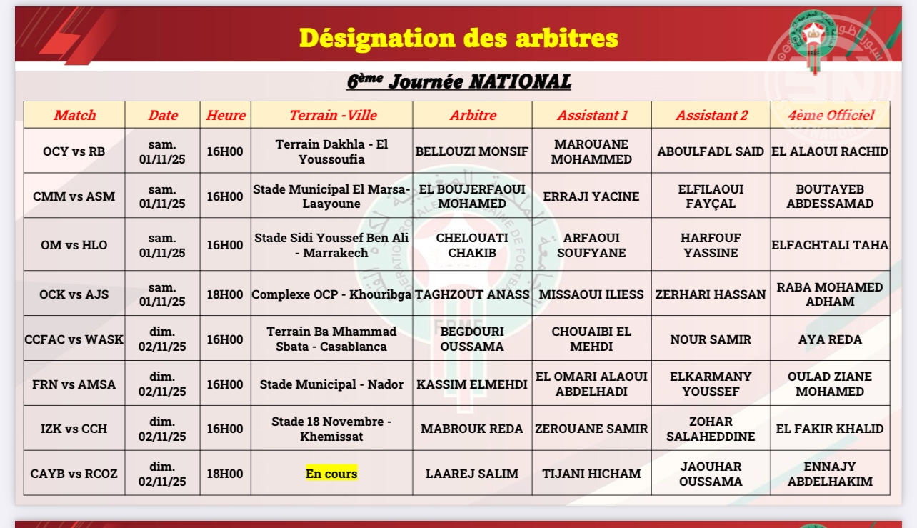 قاسم المهدي يقود مباراة الفتح الناظوري ومولودية آسا في البطولة الوطنية للهواة