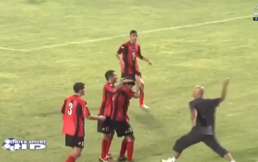 مدرب يعتدي على لاعب احتفل بهدفه !!