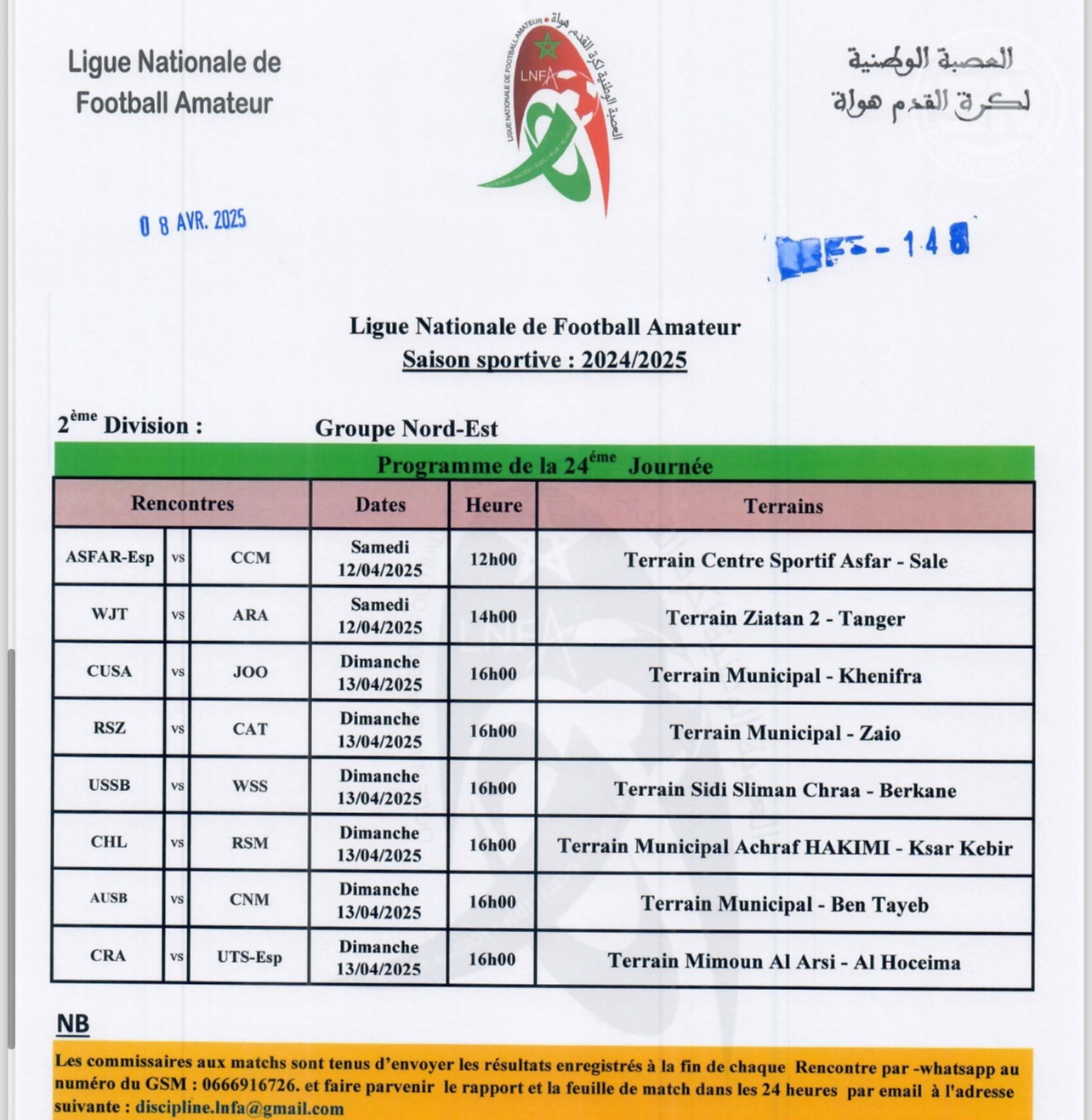 مواجهات قوية في الجولة 24 من بطولات الهواة… فتح الناظور في تنقل صعب وهلال الناظور في اختبار أمام أجاكس طنجة