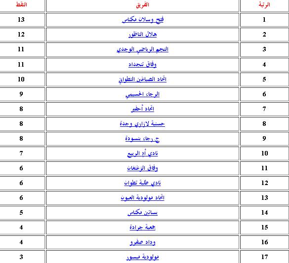 نتائج وترتيب مباريات القسم الثاني هواة شطر / الشمال